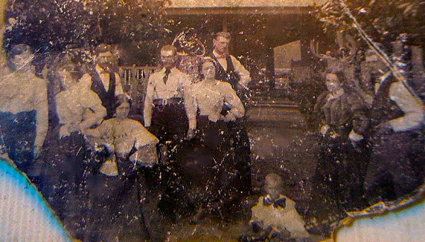 Left to righ: Richard N. Cunningham, Cousin Laura Moragne Davis, James Alfred Cunningham, Ida Cunningham ( seated ), William Speller Cunningham, Velma Cunningham " Auntee" , Ben Jr. ( died 1926 in auto accident), Craig Denson ( child on ground), Lucretia ( Ludie) Cunningham Denson ( Selma, Alabama), and their father Ben Cunningham Sr. born 1843. Their mother had passed away in 1891.